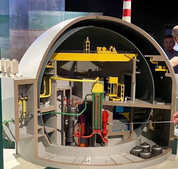 Vi vil i resten af artiklen som værterne bruge ordet kernekraft i stedet for atomkraft. Kort tid inden besøget var der sprunget et ufarligt, men