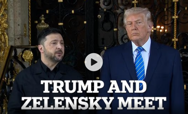Derefter hold han møde med Ukraines præsident, Volodymyr Zelenskyj i sin sommerresidens i Mar-a-Lago i Palm Beach. Undervejs havde han drøftelser på telefonen med europæiske stats- og regeringschefer.