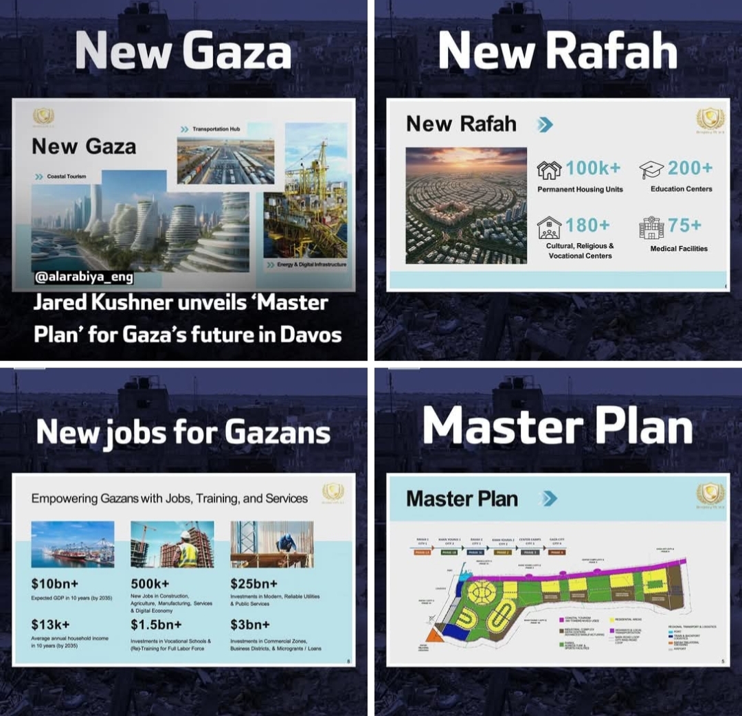 Et nyt ord for “en KZ lejr i flygtningelejren.” Trumps svigersøn, Jard Kushner, var i Davos hvor han fremlagde planerne for Gaza i idylliske vendinger (her 21 minutter.) Desværre kom Steve Witkoff til at afsløre nogle sandheder, blandt andet at det hele havde været planlagt længe før årtiets false flag løgn, angrebet 7 oktober. Steve Witkoff er en ‘real estate developer,’ der har fungeret som USA’s  “særlige fredsudsendning til Mellemøsten.” Der er rigeligt at “udvikle,” ikke mindst olie for milliarder uden for Gaza’s kyst.